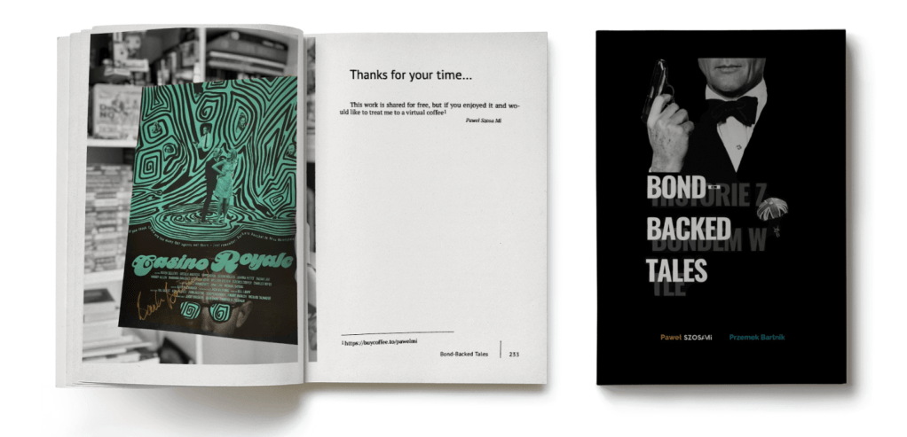 “Bond-Backed Tales” is a book full of humor and trivia (sometimes very loosely) related to James Bond. It features amusing anecdotes and stories inspired by the adventures of Agent 007, enriched with unique illustrations by Przemek B., reminiscent of the golden era of the Polish School of Poster Art. Written in a light and accessible style, the book provides both laughter and intriguing insights into the world of secret agents. Perfect for readers who enjoy literature with a touch of humor, adventure, and a healthy dose of irony.